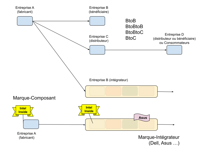 Alternativement : si les intégrateurs sont des entreprises récentes sur un marché de niche (BtoB ou BtoC) mais à fort potentiel, la stratégie InBranding pour le fabricant de composant est un pari à faible coût qui vaut la peine d’être mis en œuvre. Les intégrateurs ont flairé une niche … autant en profité et imposer sa marque à ces nouveaux consommateurs/utilisateurs.