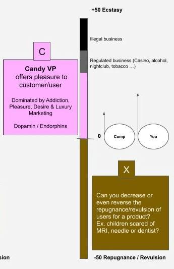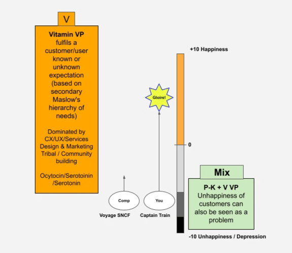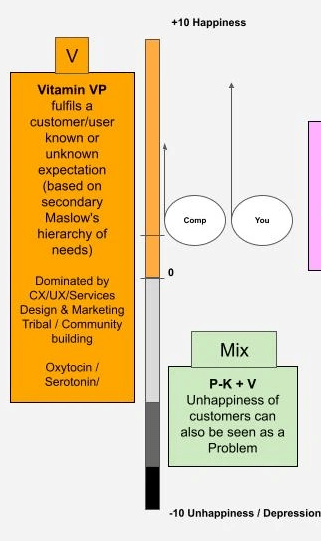 Dans la catégorie Vitamin/Lifestyle, il y a une zone négative (nommée Mix) où les clients/utilisateurs/consommateurs sont insatisfaits / malheureux de la situation présente, insatisfaits des produits (biens et/ou services) existants sur le marché. Cette insatisfaction peut s'assimiler à un problème qui nécessite donc une solution.